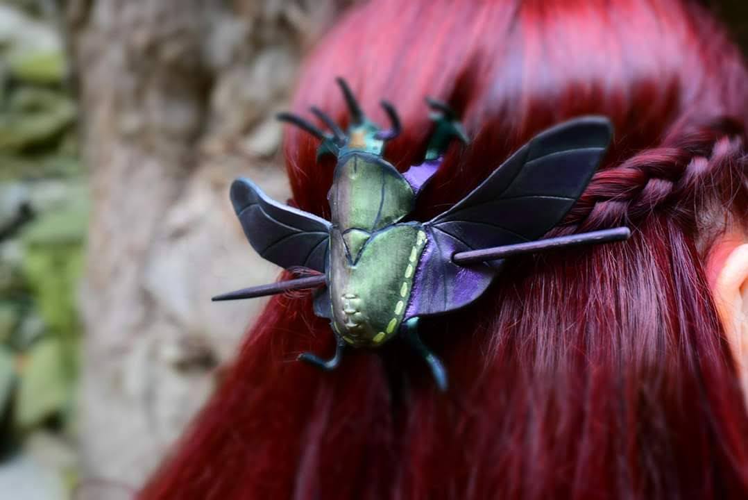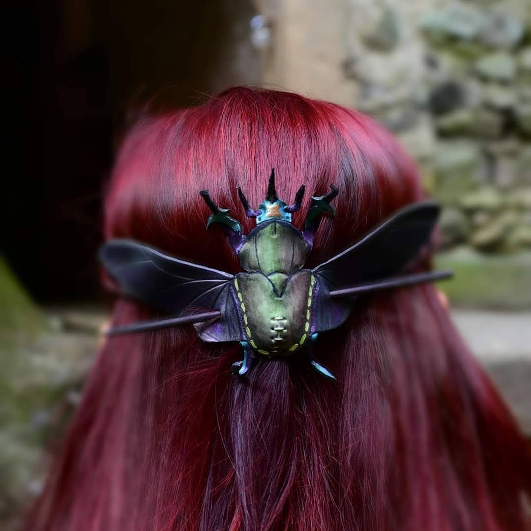 Chrząszcz to spinka dla tych, którzy lubią rzeczy z duszą. Inspirowana naturą, symboliką przemiany i siły przetrwania – nie jest ozdobą grzeczną ani oczywistą. To detal, który mówi więcej niż biżuteria. Wykonana ręcznie z naturalnej skóry garbowanej roślinnie, bez barwników i chemii. Każdy egzemplarz jest unikatowy – faktura skóry, odcień i rysunek sprawiają, że nie istnieją dwie identyczne spinki. Chrząszcz z czasem nabiera charakteru, starzejąc się razem z właścicielką. Solidna, wygodna i trwała. Dobrze trzyma włosy, a jednocześnie pozostaje lekka i komfortowa w noszeniu – na co dzień i na specjalne okazje. Cena chrząszcza wacha się w przedziale 180 – 200 zł.