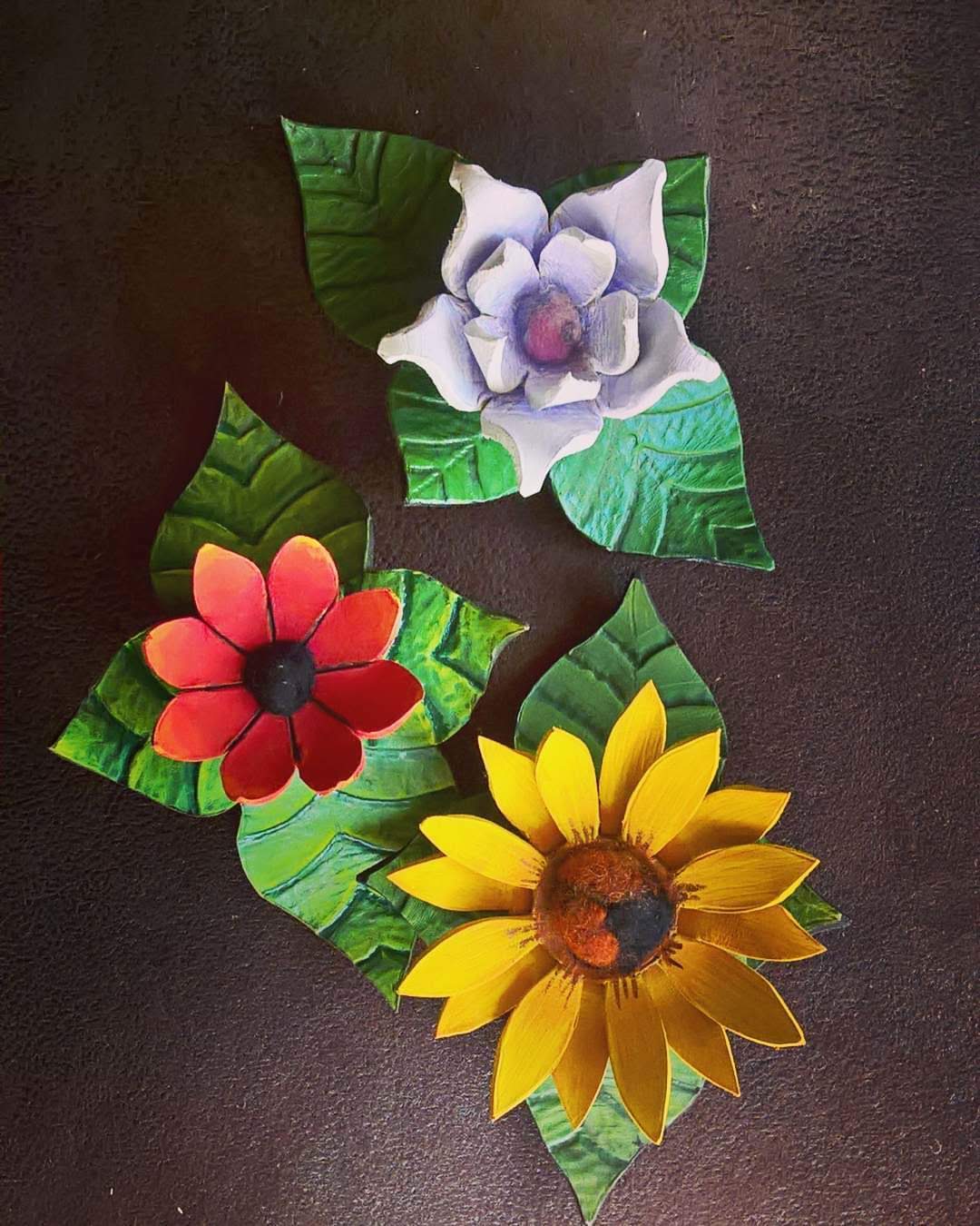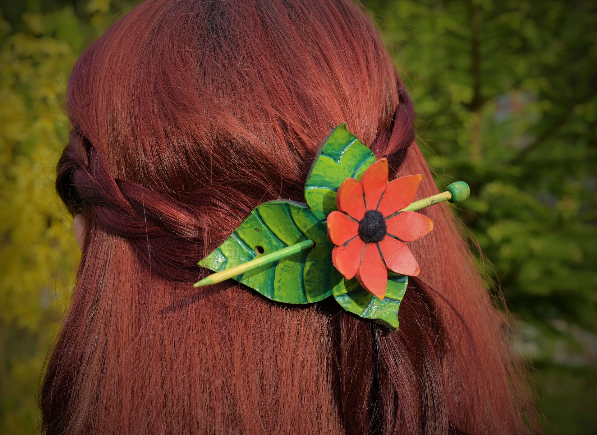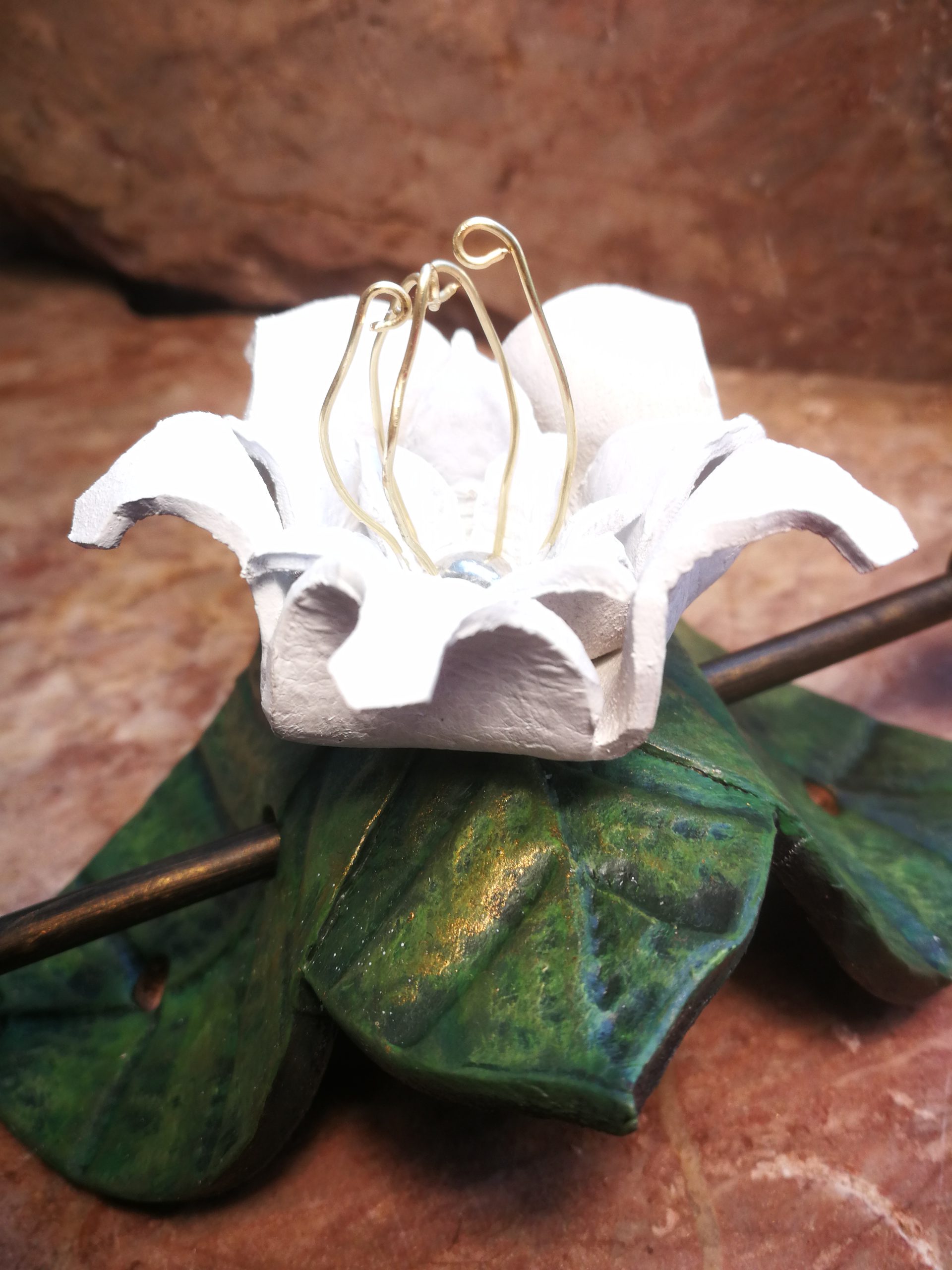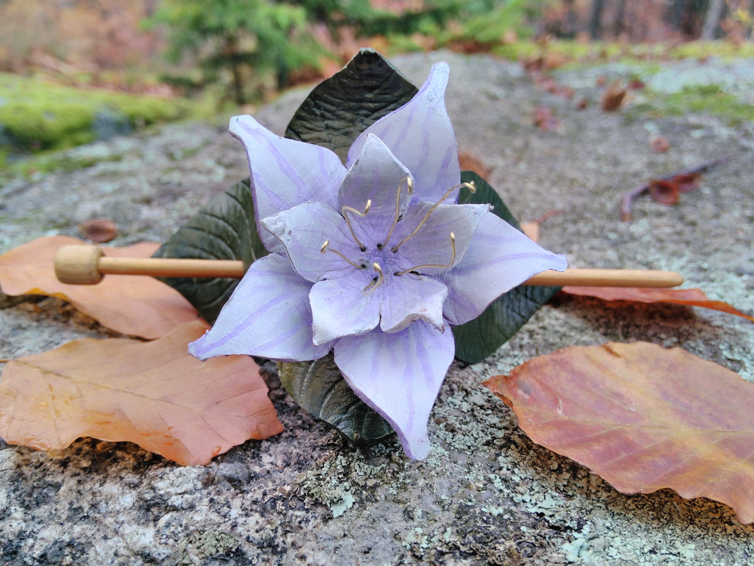 Kwiaty w Twoich włosach to subtelny znak radości, życia i harmonii z naturą. Każda spinka — czy to słonecznik, lilia, mak czy inny kwiat — powstaje ręcznie z naturalnej skóry garbowanej roślinnie, z dbałością o najdrobniejsze detale: kształt płatków, fakturę liści, naturalne cieniowanie skóry.