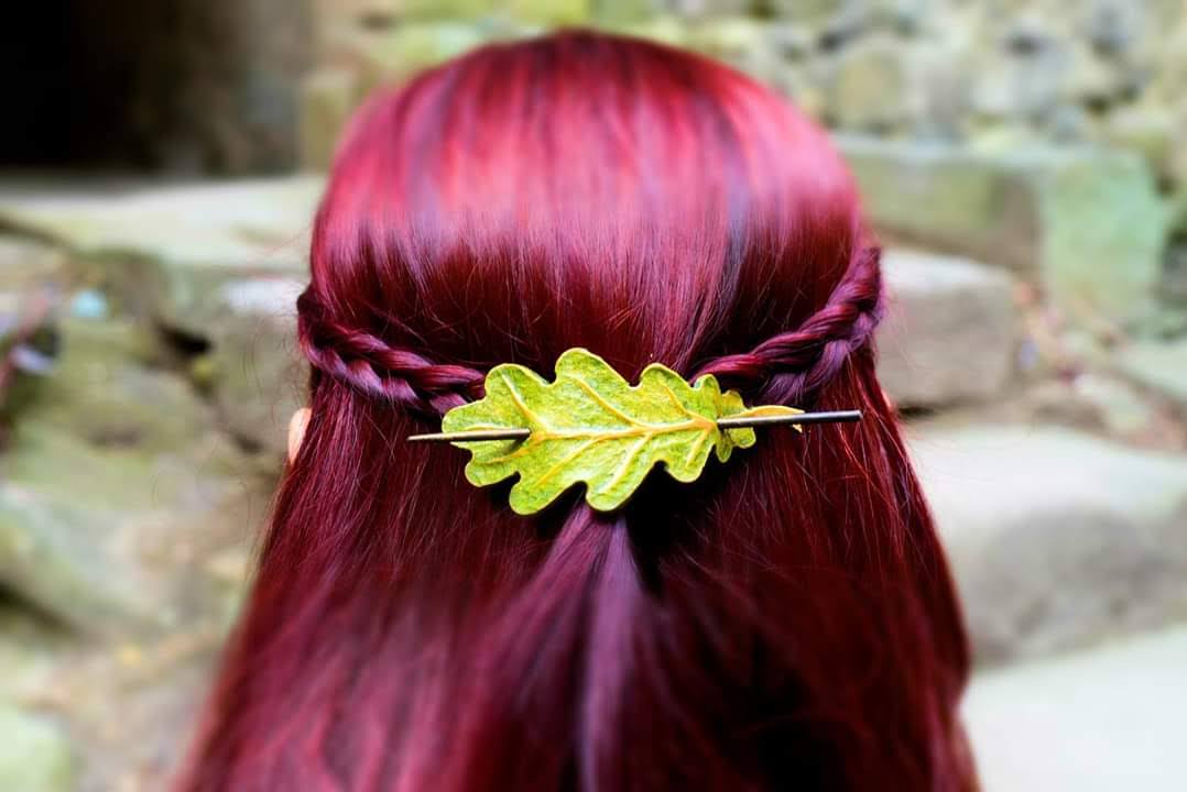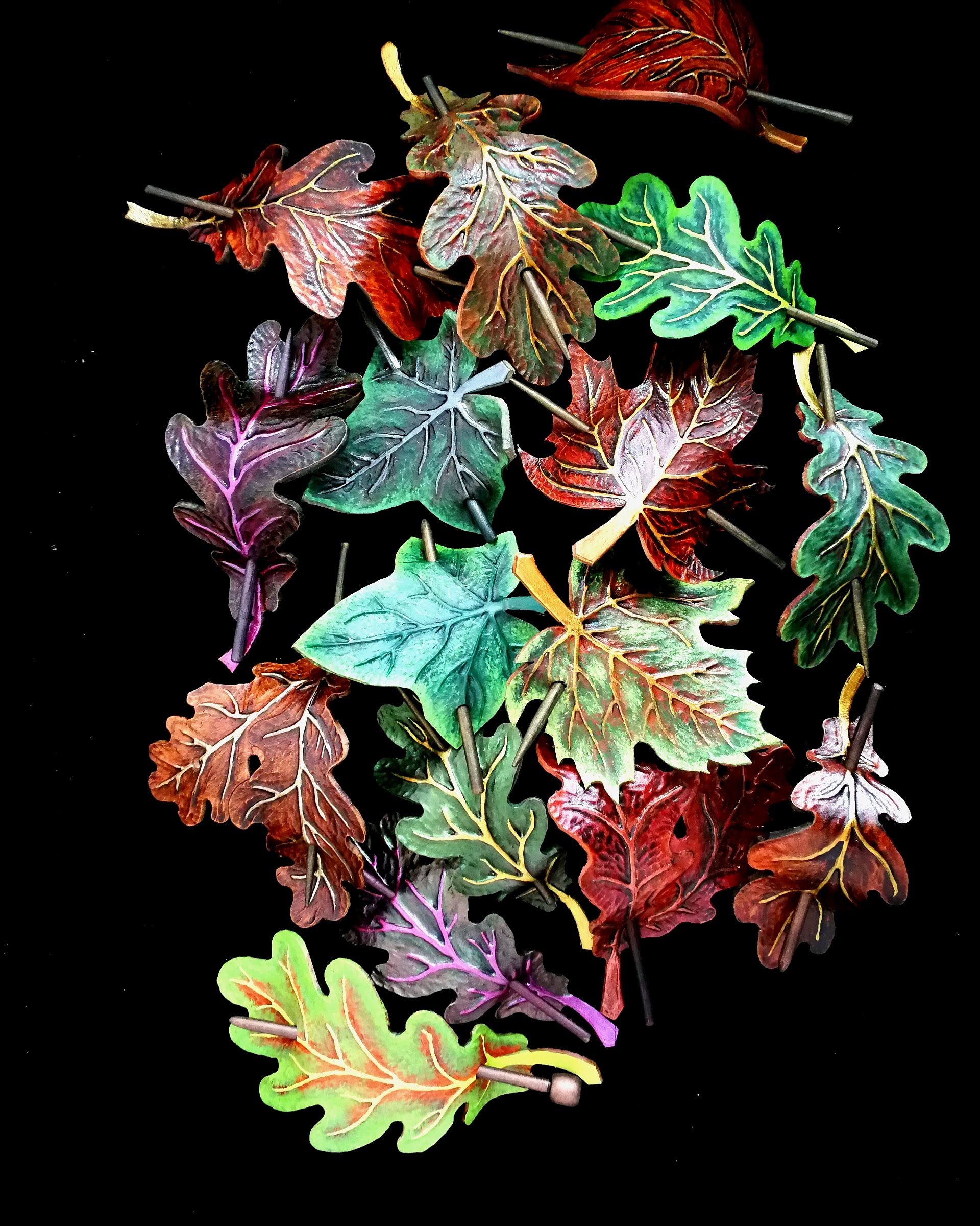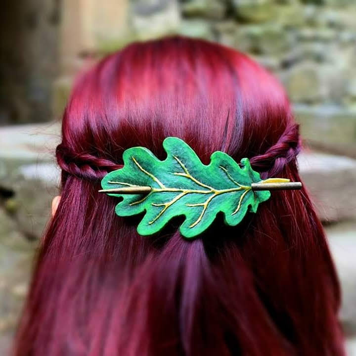 Liście można nosić w różnych kolorach, a na życzenie mogę wykonać je w dowolnym odcieniu, idealnie dopasowanym do Twojego stylu i charakteru. To nie tylko ozdoba włosów, ale także mały symbol harmonii z naturą i indywidualności, który towarzyszy Ci na co dzień.